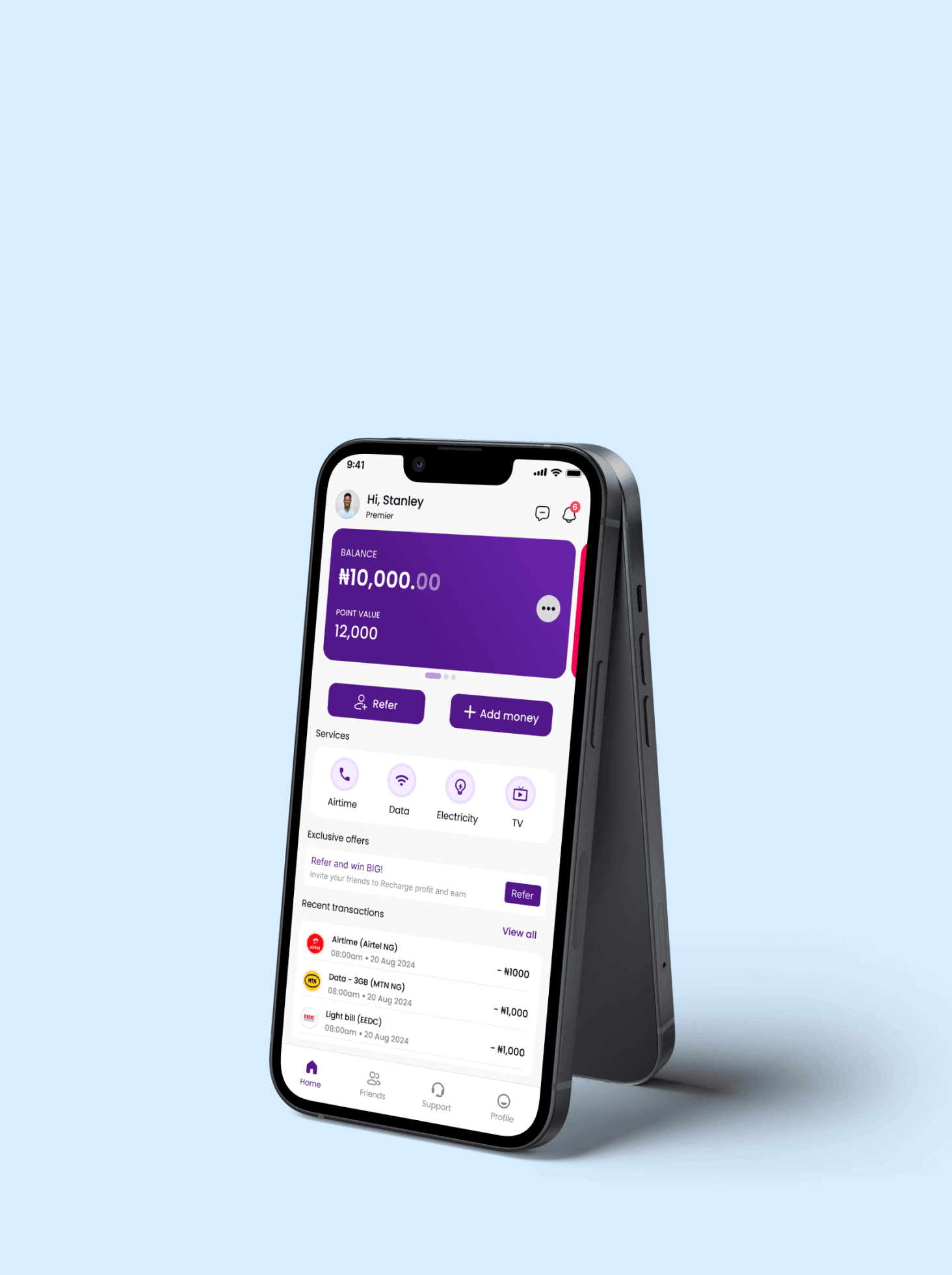 RechargeProfit offers a seamless mobile experience for bill payments, airtime purchases, and earning rewards through referrals, all in one convenient app.